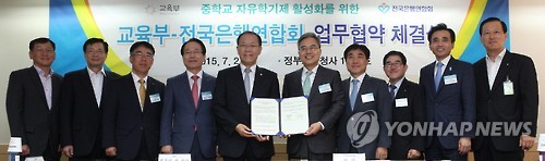 교육부는 2일 정부서울청사에서 전국은행연합회와 자유학기제 활성화를 위한 업무협약을 체결한다고 밝혔다.