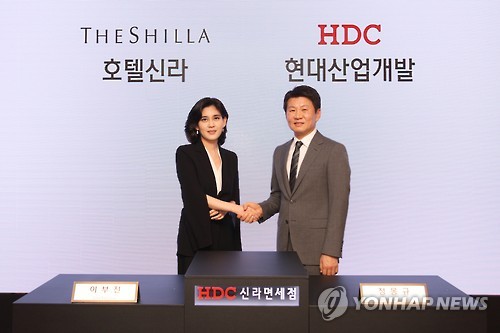 HDC신라면세점은 호텔신라와 현대산업개발이 서울시내 면세점 유치를 위해 함께 설립한 합작 법인으로, 이 사장과 정 회장은 이날 행사에 참석했다.
