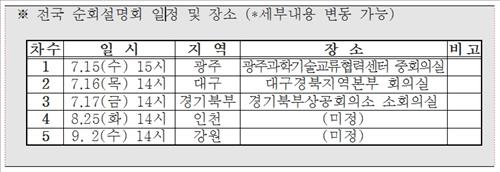 설명회는 이달 15일 광주, 16일 대구, 17일 의정부, 8월 25일 인천, 9월 2일 강원도에서 열린다.