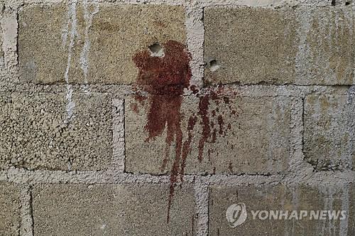 | △ 2014년 6월 멕시코 멕시코 주 틀라틀라야시의 한 창고에서 발생한 군경과 마약갱단 조직원간 총격전 당시 창고 내부의 벽에 갱단 조직원이 즉결처형된 의혹을 보여주는 총알 자국이 나 있다.(AP=연합뉴스DB) |