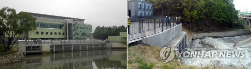 | △ 김포시 빗물 펌프장용량 대폭 확충…홍수피해 최소화 (김포=연합뉴스) 경기도 김포시는 집중호우 피해를 최소화하기 위해 빗물을 강제로 한강으로 퍼내는 배수 펌프장을 가동하는 등 총력을 쏟고 있다고 3일 밝혔다. 사진은 왼쪽부터 운양배수펌프장 전경과 가동 모습. 2015.7.3 << 김포시청 제공 >> |