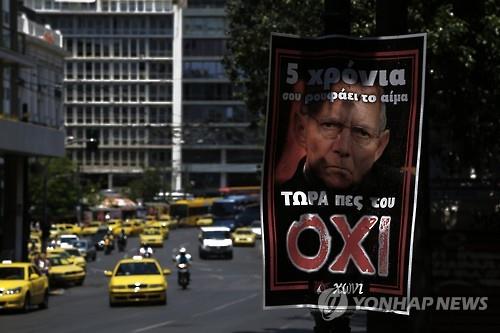 아테네 거리에는 독일 재무장관 볼프강 쇼이블레의 사진과 함께 "그는 5년 동안 당신의 피를 빨아왔다. 이제 그에게 아니라고 말해라"라는 포스터가 나붙었다.