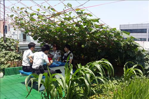 20년 이상 된 낡은 건물이지만 농장이 조성된 이후에는 옥상 표면온도도 낮아져 지구대 내부도 훨씬 시원해졌다.