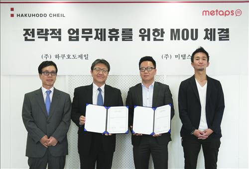 (서울=연합뉴스) 박대한 기자 = 하쿠호도제일은 모바일 광고 솔루션 전문회사인 미탭스코리아와 전략적 업무제휴를 맺고 양사 간 노하우와 플랫폼을 공유한다고 6일 밝혔다.