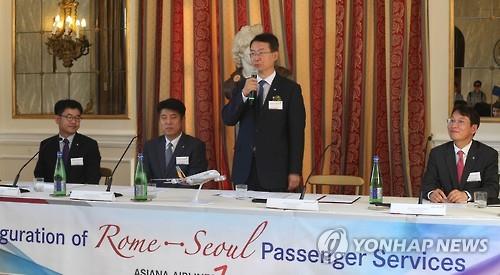 이어 "고대 문명과 르네상스를 꽃피운 역사와 문화의 중심지 로마에 아시아나항공이 취항해 기쁘고 영광스럽다"며 "(취항이) 늦은 만큼 분발해 한국과 이탈리아 사이 가교 역할을 충실히 하겠다"고 덧붙였다.
