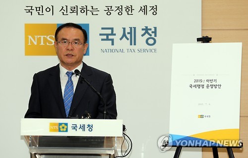 | △ 국세청, 비정상적 세무관행 근절 강력 추진 (세종=연합뉴스) 배재만 기자 = 심달훈 징세법무국장이 6일 오전 세종시 국세청에서 2015년 하반기 국세행정 운영방안에 대해 브리핑하고 있다. |