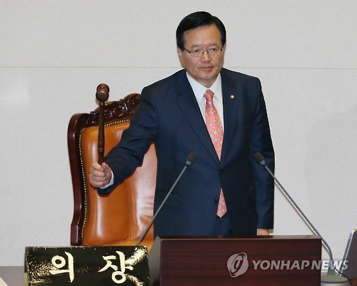 | △ 국회법 개정안 재의안 본회의 상정 (서울=연합뉴스) 진성철 기자 = 정의화 국회의장이 6일 국회 본회의에서 국회법 개정안 재의안을 상정하고 있다. |