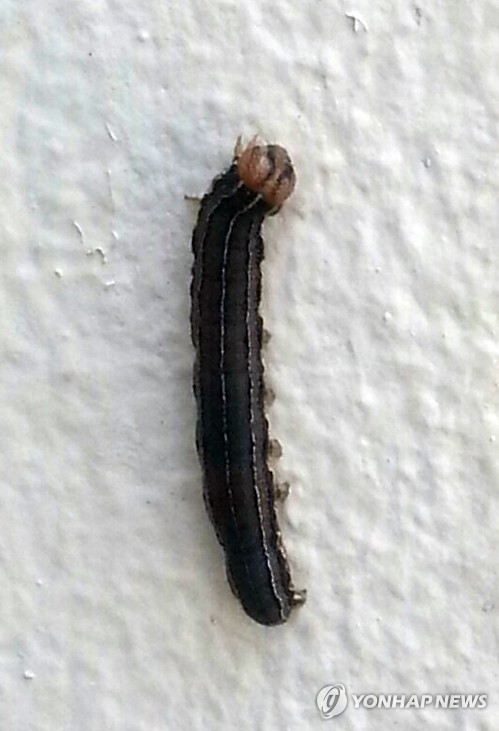 (김제=연합뉴스) 김진방 기자 = 최근 전북 김제에 출현한 '멸강충'은 중국에서 비래 하는 해충인 멸강나방(학명 Pseudaletia separata)의 유충으로 볏과 식물과 사료작물인 옥수수를 먹고 사는 번식력이 강한 해충이다.