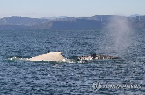 뉴질랜드 바다서 희귀종 흰 혹등고래 발견