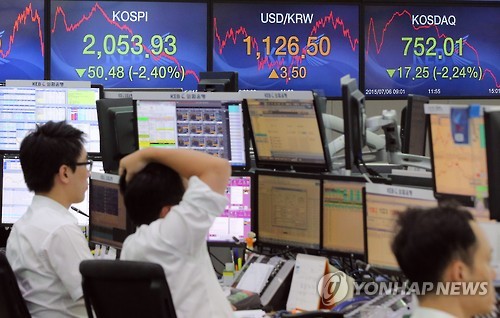 코스피는 전 거래일보다 50.48포인트(2.40%) 내린 2,053.93으로 장을 마쳤다.