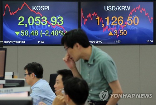 이에 코스피는 전 거래일보다 50.48포인트(2.40%) 내린 2,053.93으로 장을 마쳤다. 이날 하락률은 2012년 6월 4일(-2.80%) 이후 가장 컸다.