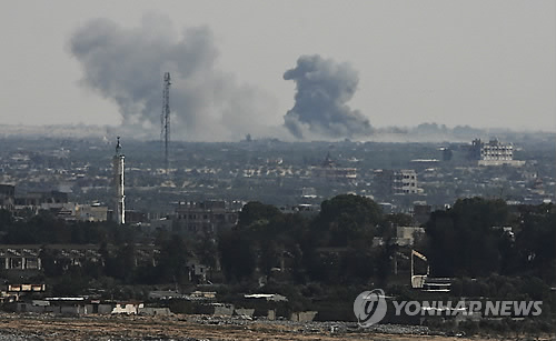 | △ 연기 피어오르는 시나이 반도 (시나이 EPA=연합뉴스) 2일(현지시간) 이집트 시나이 반도 북부 국경 지역에서 연기가 나고 있다. 전날 수니파 무장조직 이슬람국가(IS) 연계 세력의 소행으로 보이는 연쇄 테러가 발생, 최소 100명의 군인과 민간인이 사망했다. 2010596@yna.co.kr EPA/MOHAMMED SABER |