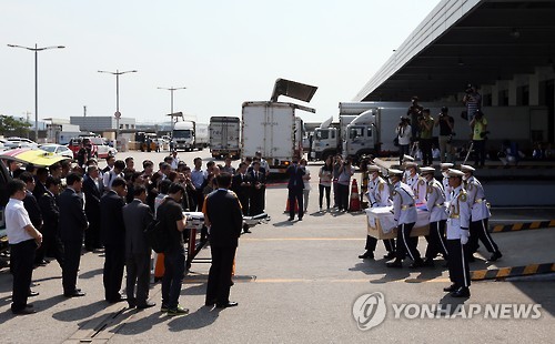 (지안<중국>·서울=연합뉴스) 홍창진 특파원 하채림 기자 = 중국 지린(吉林)성 지안(集安)에서 연수 중 버스사고로 숨진 공무원 등 우리 국민 10명의 시신이 6일 오후 1시5분 인천공항을 통해 도착했다.