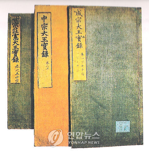 | △ 조선왕조실록 중 성종.중종.세종실록의 표지 (연합뉴스 자료사진) |