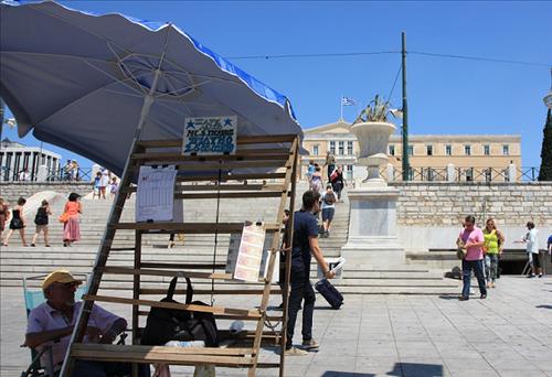 신타그마 광장에는 복권을 파는 노점상이 이날도 파라솔을 펼치고 자리를 잡았다.