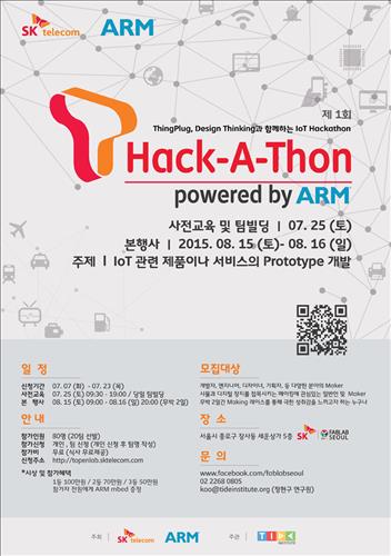 SK텔레콤이 다음 달 15일부터 무박 2일로 서울 종로구 SK팹랩서울에서 개최하는 해카톤은 국제표준 IoT 플랫폼인 SK텔레콤의 씽플러그(ThingPlug)와 ARM의 IoT 개발보드인 엠베드를 활용해 IoT 영역에서 새로운 가치를 창출 할 수 있는 아이디어 제품과 서비스 개발을 목표로 진행된다.