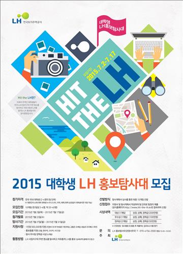 (서울=연합뉴스) 서미숙 기자 = 한국토지주택공사(LH)는 오는 17일까지 전국의 대학생을 대상으로 LH 홍보탐사대 'Hit the LH'를 모집한다고 8일 밝혔다.