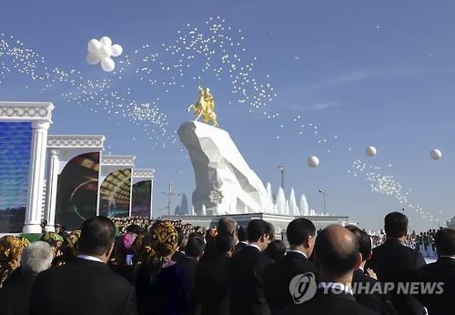 | △ 구르반굴리 베르디무하메도프 투르크메니스탄 대통령의 황금동상 (연합뉴스 DB). |