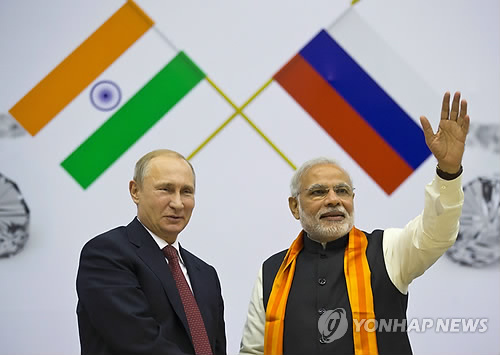 | △ 블라디미르 푸틴 러시아과 나렌드라 모디 인도 총리 (AP=연합뉴스 자료사진) |