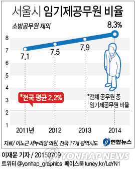 (서울=연합뉴스) 이정현 기자 = 서울시 임기제공무원이 매년 지속적으로 증가하고 있으며 그 비율이 전국에서 가장 높은 것으로 나타났다.