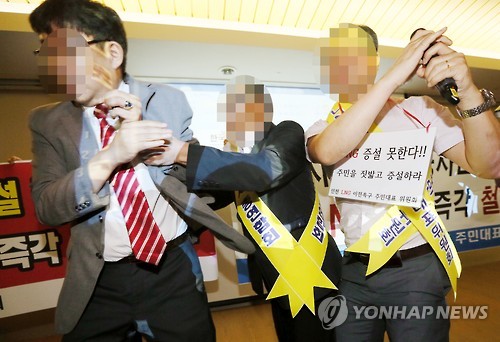 일부 참석자들은 "무조건 못 듣게 하면 어떻게 하느냐. 설명이라도 듣고 반대 의견을 개진해야 하는 것 아닌가"라고 불만을 표출하기도 했다.