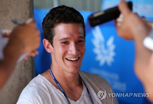 | △ <U대회> 인터뷰하는 토마스 판데르 플레센 (광주=연합뉴스) 한종찬 기자 = 광주유니버시아드주경기장에서 2015 광주하계유니버시아드대회 육상 10종 경기에 출전 선수인 벨기에의 토마스 판데르 플레센이 연합뉴스와 인터뷰하고 있다. 2015.7.11 saba@yna.co.kr |