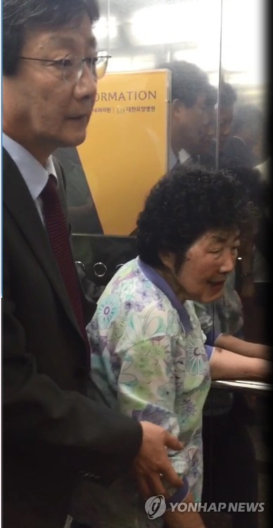 | △ 어머니 부축하는 유승민 전 새누리당 원내대표 (대구=연합뉴스) 김선형 기자 = 11일 대구 한 요양병원 엘리베이터에서 유승민 전 새누리당 원내대표가 어머니 강옥성(86)씨를 부축하고 있다. 이 요양병원에는 유 의원 아버지인 유수호(85) 전 의원이 입원했다. 2015.7.12 sunhyung@yna.co.kr |