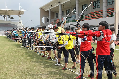 | △ 경북 예천군이 '세계 활연맹' 창설을 추진한다. 사진은 지난 4월 예천진호국제양궁장에서 개막한 '제49회 전국 남녀 양궁 종별 선수권대회' 모습.(연합뉴스 자료사진) |
