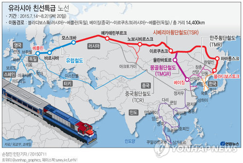 (서울=연합뉴스) 황철환 기자 = 정·재계와 학계, 문화계 인사와 대학생 등 250여명이 열차를 타고 유라시아를 횡단하는 '유라시아 친선특급 2015' 행사가 이틀 앞으로 다가왔다.
