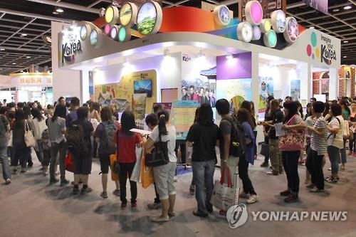 | △ (홍콩=연합뉴스) 최현석 특파원 = 14일 홍콩국제관광박람회가 열리는 홍콩섬 컨벤션전시센터 내 한국홍보관은 한국 내 메르스 확산에 따른 우려에도 한국 여행 계획을 가진 홍콩인과 중국인들로 인산인해를 이뤘다.2015.6.14 |