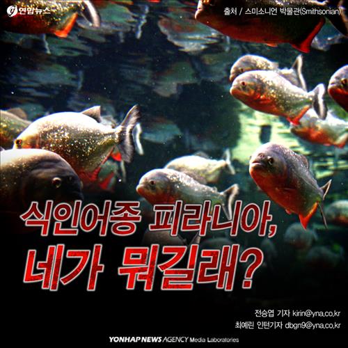 (서울=연합뉴스) 전승엽 기자·최예린 인턴기자 = 최근 강원도 횡성의 한적한 시골마을에 식인 물고기가 출몰해 소동이 벌어졌다. 남미 아마존이 고향인 열대어종 '피라니아(피라냐)'에 대해 알아본다.