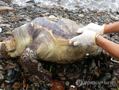 부산 해안서 멸종위기 푸른바다거북 사체 발견