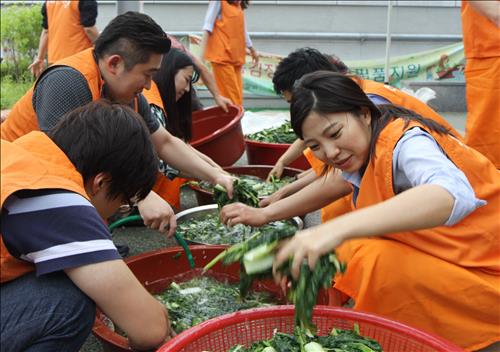 임직원들은 성동종합사회복지관을 찾아 어르신들과 함께 수박을 나눠 먹고 열무김치와 여름 생필품 키트를 직접 만들어 전했다.