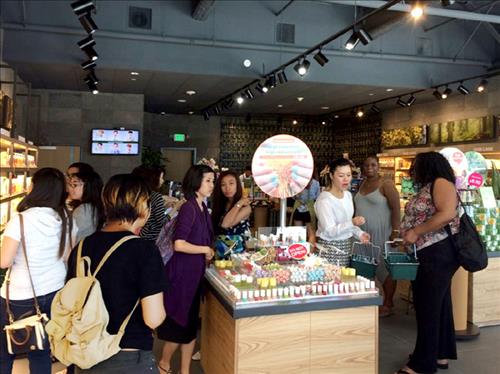 | △ 네이처리퍼블릭 미국 LA 윌셔점을 방문한 고객들이 제품을 테스트하고 있다. |