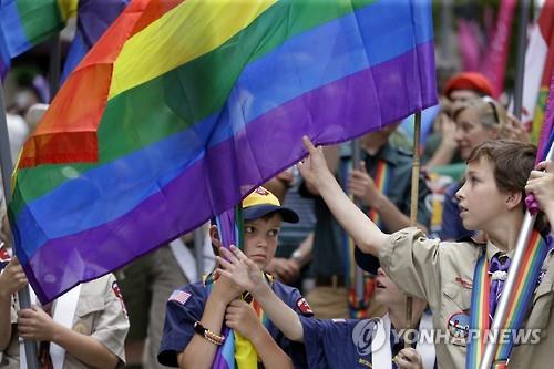 | △ 지난 6월 시애틀에서 열린 게이 프라이드 퍼레이드에 참석한 보이스카우트 소년들 (AP=연합뉴스) |