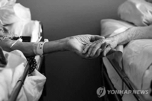 | △ 한 호스피드 병동에서 함께 임종한 부부의 맞잡은 손(AP=연합뉴스 자료사진) |