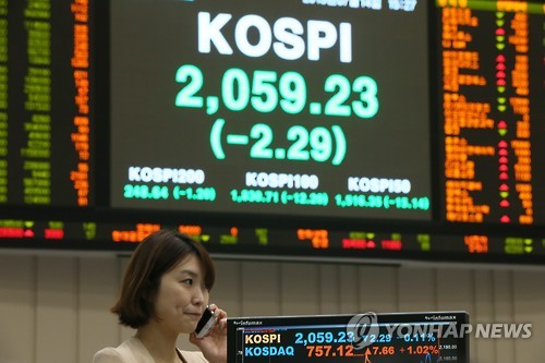 이날 코스피는 전 거래일보다 2.29포인트(0.11%) 내린 2,059.23에 장을 마감했다.