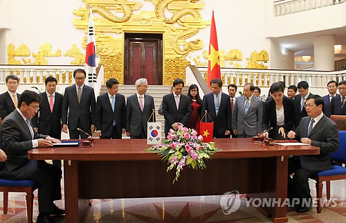 | △ 지난 5월 베트남 수도 하노이에서 열린 한·베트남 자유무역협정(FTA) 서명식 |