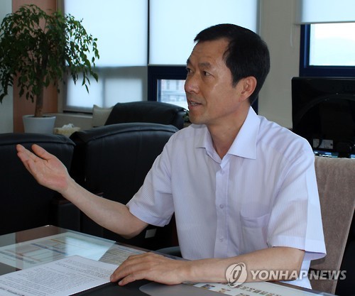 | △ 인터뷰하는 안상진 한국산업단지공단 울산지역본부장 (울산=연합뉴스) 허광무 기자 = 7월부터 본부로 승격한 한국산업단지공단 울산지역본부의 안상진 본부장이 연합뉴스와 인터뷰하고 있다. 그는 "사업 자율성과 권한 강화로 울산 특성에 맞는 맞춤형 서비스를 제공할 수 있다"고 밝혔다. 2015.7.15 hkm@yna.co.kr |