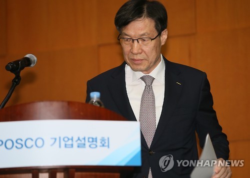 | △ 권오준, 포스코 경영쇄신안 발표 (서울=연합뉴스) 진성철 기자 = 권오준 포스코 회장이 15일 서울 여의도 한국거래소에서 개최한 기업설명회에서 경영쇄신안을 발표하기 전 굳은 표정을 짓고 있다. |