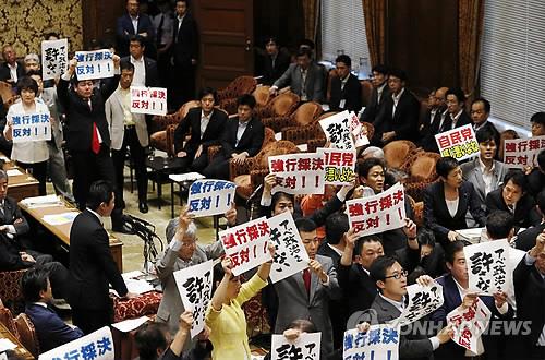 日아베 정권, 집단자위권 법안 오늘 중의원 표결 강행