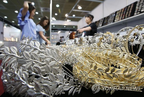 | △ 2015 한국주얼리페어 개막 (서울=연합뉴스) 임헌정 기자 = 16일 서울 삼성동 코엑스에서 개막한 '2015 한국주얼리페어'에서 참관객들이 아름다운 주얼리 제품을 살펴보고 있다. |
