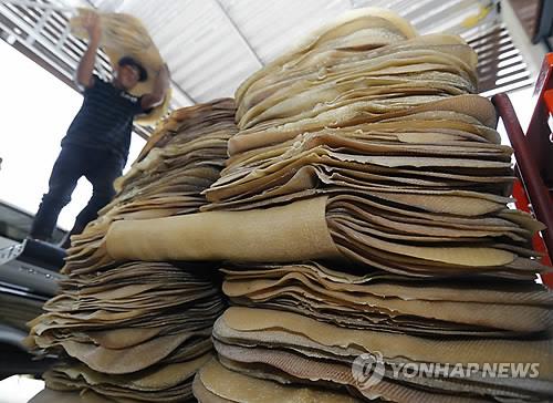 | △ 태국 남부 수라타니 지방에서 근로자가 고무를 운반하고 있다.(EPA=연합뉴스 자료사진) |