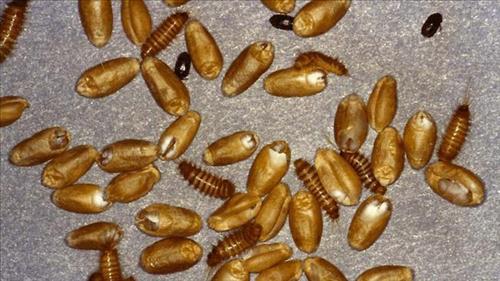 | △ 카프라 비틀 유충, 성충, 표피 (미 농무부 자료사진) |