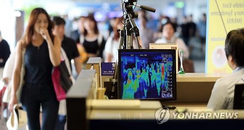 | △ (영종도=연합뉴스) 최재구 기자 = 9일 인천국제공항에서 검역소 직원들이 홍콩발 항공기를 통해 입국한 승객들의 체온을 체크하고 있다. 질병관리본부는 홍콩에서 유행하고 있는 '홍콩 계절 인플루엔자(홍콩 독감)'의 국내 유행을 막기 위해 홍콩 여행객에 대한 입국 검역을 강화한다고 밝혔다. 2015.7.9 jjaeck9@yna.co.kr |