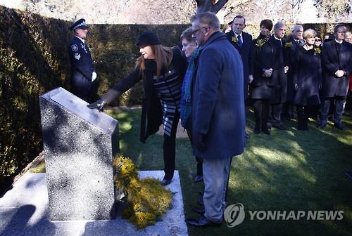 먼저 애벗 총리 부부가 기념비 기단에 화환을 바친 데 이어 유족 수십 명이 눈물을 흘리며 그 뒤를 따랐다.