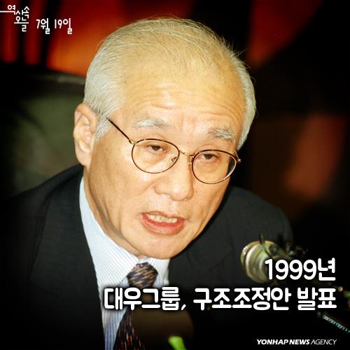 (서울=연합뉴스) 1999년 7월19일 오전 서울역 앞 대우센터에서 대우그룹이 '구조조정 가속화 및 구체적 실천방안'을 발표했다. 이날은 정주호 구조조정본부장이 나섰지만, 6일 뒤에는 김우중 회장이 직접 "대우그룹의 경영을 조기에 정상화하고 명예롭게 퇴진하겠다"고 밝혔다.