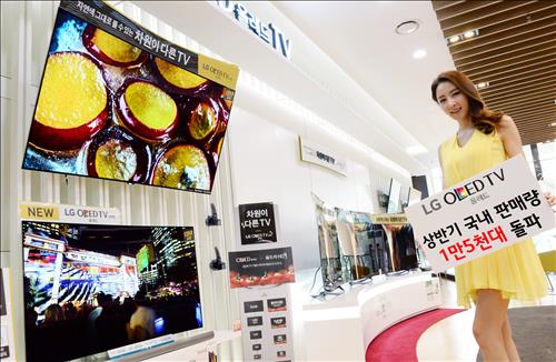 (서울=연합뉴스) 옥철 기자 = LG전자[066570]의 프리미엄 TV 대표작 올레드 TV가 올해 상반기 국내 판매량 1만5천대를 돌파했다.