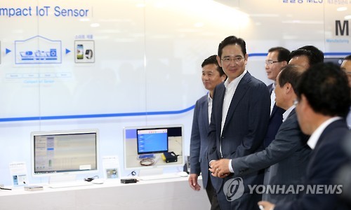 | △ 경북창조경제혁신센터 둘러보는 이재용 (구미=연합뉴스) 김준범 기자 = 21일 오전 경북 구미 경북창조경제혁신센터를 찾은 이재용 삼성전자 부회장(왼쪽 두번째)이 김관용 경북지사의 안내를 받으며 건물 내부를 둘러보고 있다. |
