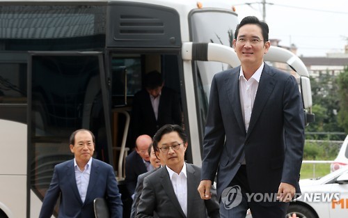 | △ 구미 찾은 이재용 부회장 (구미=연합뉴스) 김준범 기자 = 이재용 삼성전자 부회장이 21일 오전 경북 구미 경북창조경제혁신센터 건물로 들어가고 있다. |